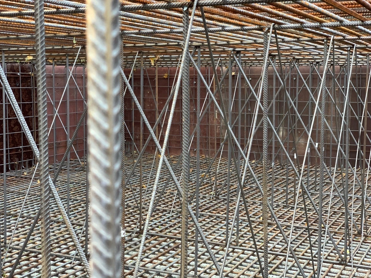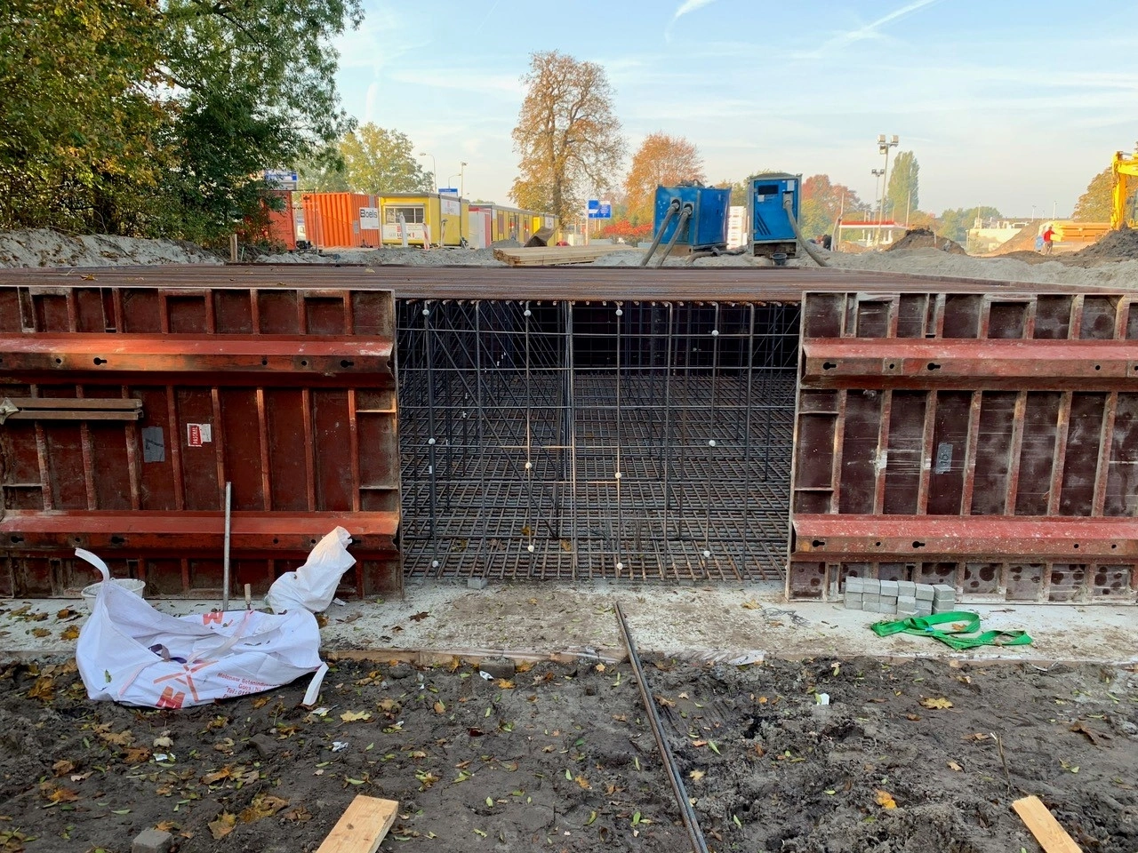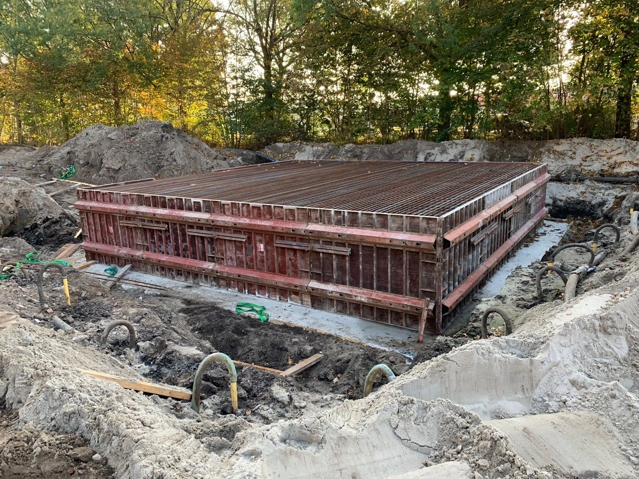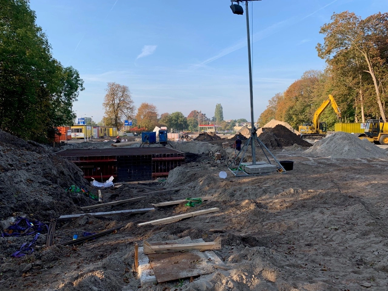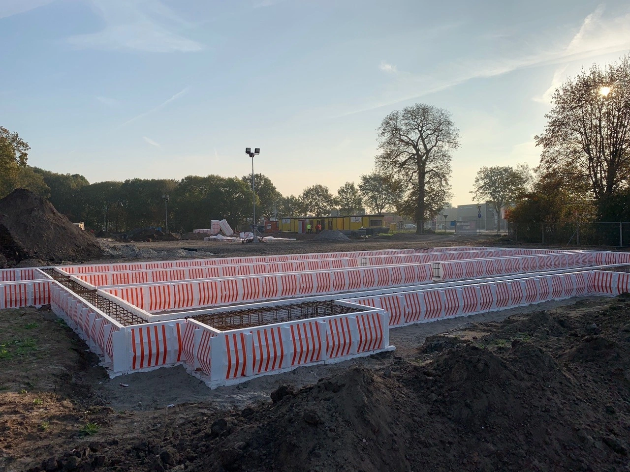 Er wordt hard gewerkt aan de de funderingen van de verschillende panden. Vooral de fundering voor de attentiemast is indrukwekkend. Op de foto's is de imposante fundering van 200 m2 (10m x 10m x 2m!!) zichtbaar.